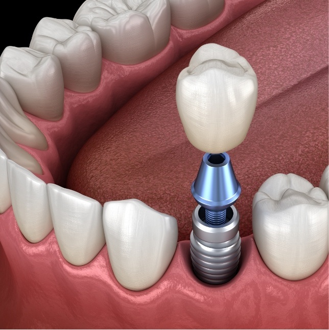 A single implant will be placed in the gap where the missing tooth used to be, and once the mouth is done healing, a crown will be connected to it via the abutment. Implant crowns are more conservative than dental bridges that can only be placed after removing a small amount of enamel from the remaining teeth.